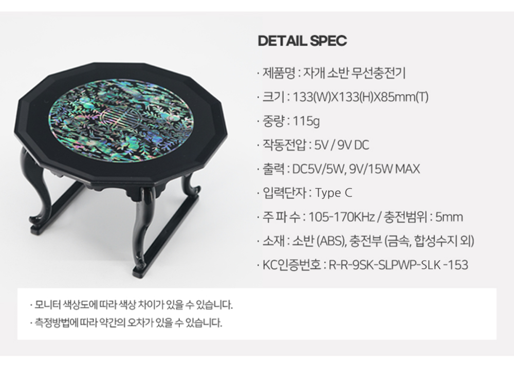 소 재 : 소반 (ABS), 충전부 (금속, 합성수지 외)