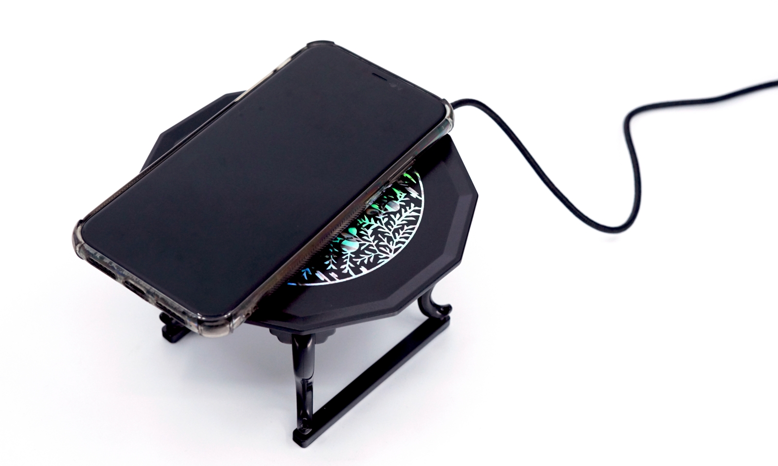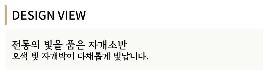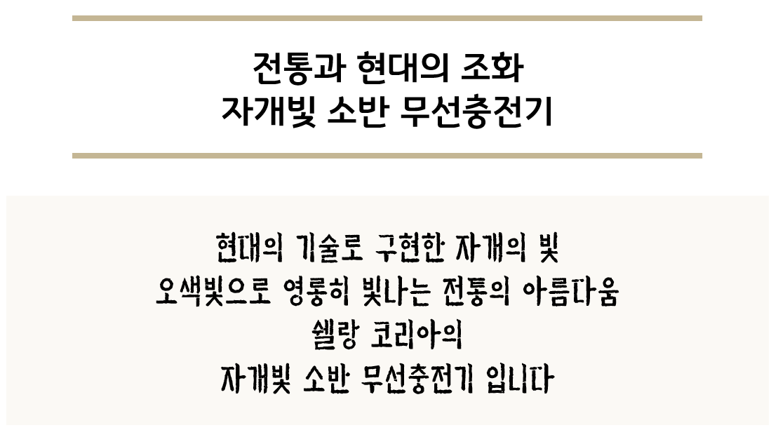 *본 제품은 자개의 빛을 내는 자개박을 적용하였습니다. 천연 자개를 사용한 자개소반 무선충전기는 아래 링크에서 주문하실 수 있습니다.