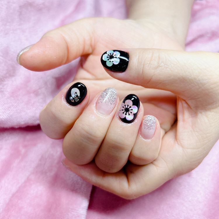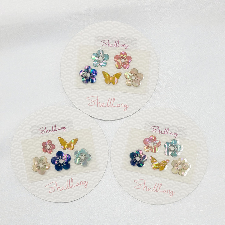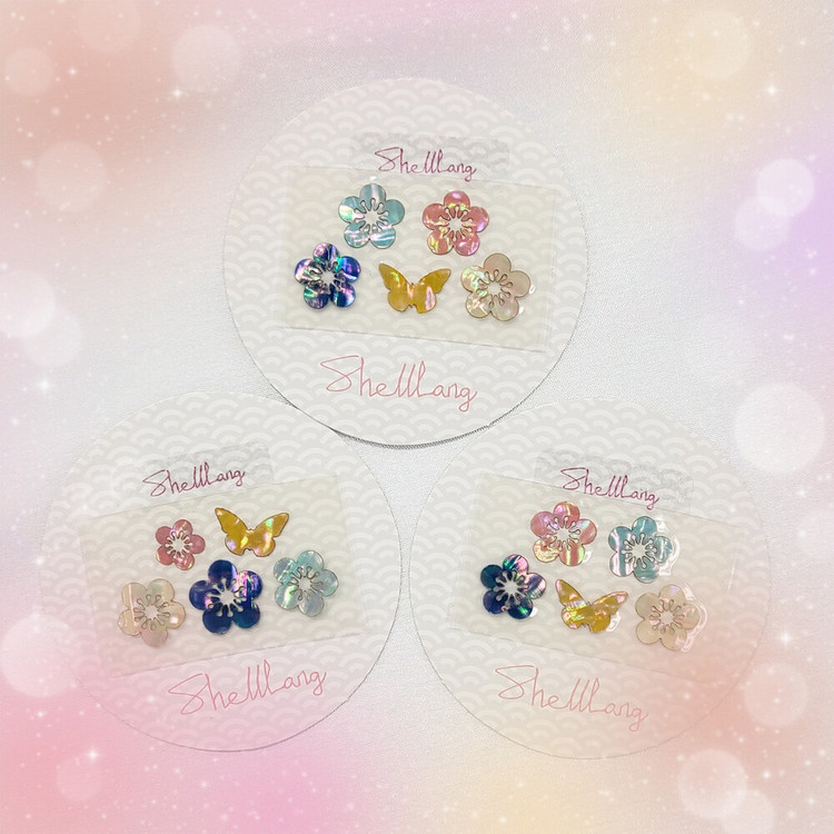 15mm 내외의 매화 꽃 스티커와 나비스티커로 구성된 세트입니다.