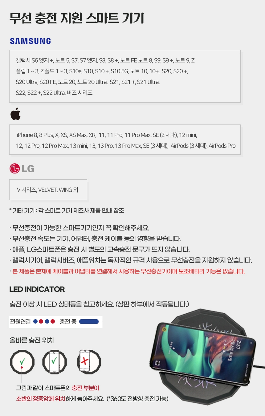 * 무선충전이 가능한 스마트기기인지 제조사 홈페이지를 통해 꼭 확인해 주세요.