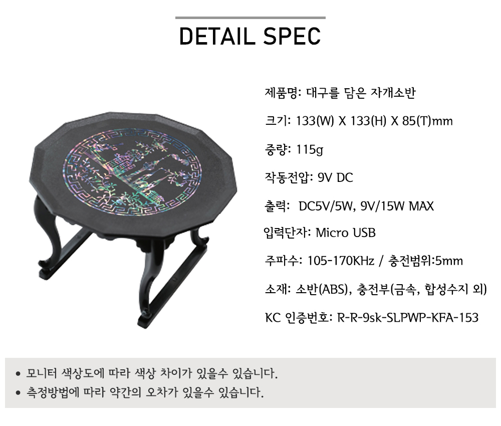 - 무선충전 원리 특성상 발열이 있으며, 고온 발생 시 자동으로 충전이 일시적으로 멈춥니다.